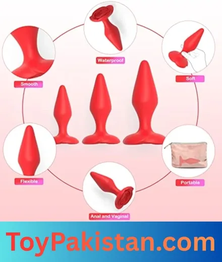 The Online Anal Plug Sex Toy in Pakistan is a soft silicone anal training set designed for safe, gentle and enjoyable backdoor play. This pack of three butt plugs is ideal for beginners and also comfortable for advanced users who want long-term wear. Each plug has a beautiful rose-shaped base that looks romantic and also works as a secure handle.